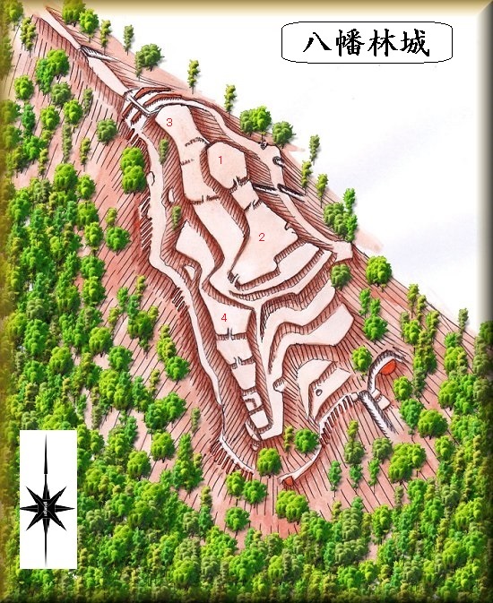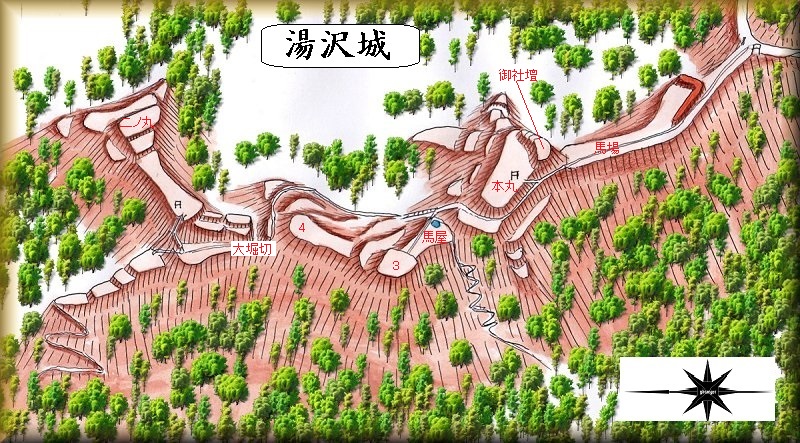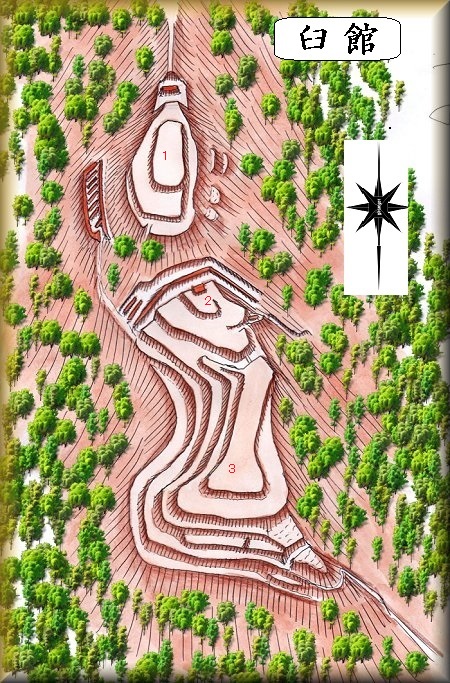 そこで『図説中世城郭事典』の図に基づいた鳥瞰図を参考までに掲載しておくが、実際に自分で遺構を確認したわけではない。