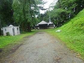 | 下の段にある八幡神社。車はここに停めて置ける。 | 谷戸状になっている3郭内部。 |