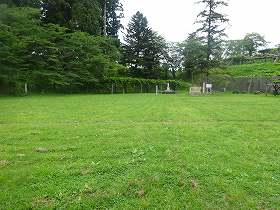 | 最初に到達する馬場。側面部には土塁がある。 | 本丸の五社壇の手前の堀切跡。 |