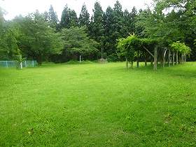 階段を上がって1郭に登ると、そこはきれいに草刈りされた広場となっていた。地形なりに削平された郭のようで、凸形をしている。長軸100mほどはあり、けっこう広い郭であり、一部に土塁が見られる。