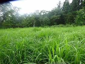 城址は館公園として整備されている・・・・というはずであったのだが、近年では草刈りがされることなく放棄されてしまっているらしい。城内どこを向いてもヤブだらけなのであった。それも半端じゃないほどの深さの草がどちらを向いても生い茂っている。