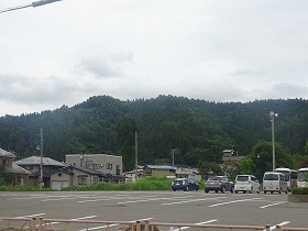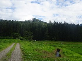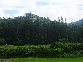 | 北側から遠望する八口内城。ここからの比高は140mほどある。 | 登城口方向から。 |