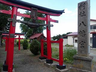 ということで八幡神社を探したのだが、南側の道路からは八幡神社が見えないので、入口を捜すのが難しい。入口はこの場所にあるが、狭い路地なので見つけにくい。小型の車なら境内まで乗り入れることができそうだ。