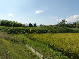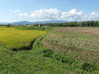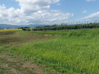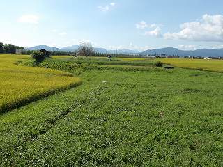 引座川の南側の水田地帯の中に、川に面した微高地が細長く延びている。これが五日市館の跡であったという。