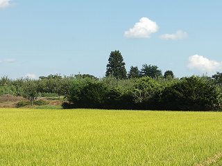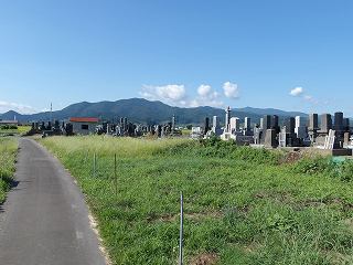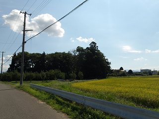 古屋敷館は、水田地帯の真ん中にある。道路が緩くカーブしているところが微高地となっており、墓地が造成されているのが見えてくる。その辺り一帯が古屋敷館の跡であったという。