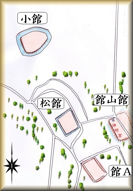 松館の場所。 小館の場所。 館山館の場所。 館Aの場所。