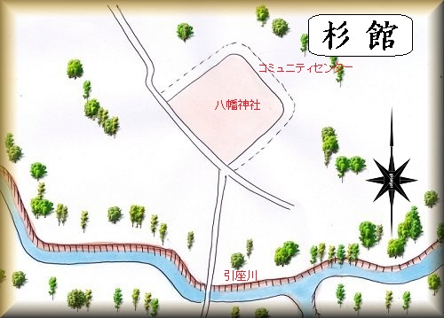この辺り一帯が杉館という地名になっていて、城館が存在していたところであったと考えられる。