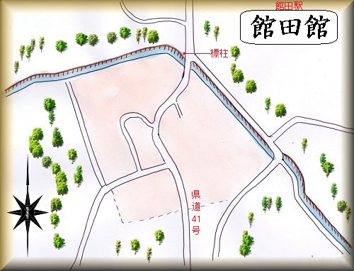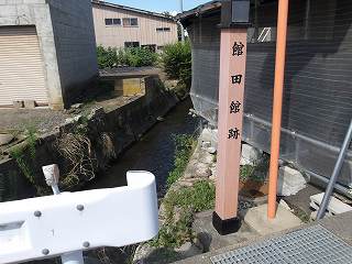 その名も館田駅の南西側一帯に館田という地名があり、城館跡の存在を示している。城館跡と思われる部分の北側には小川が流れており、その脇に城址標柱が立てられている。