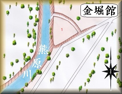 金堀館の場所。 案内板の場所。