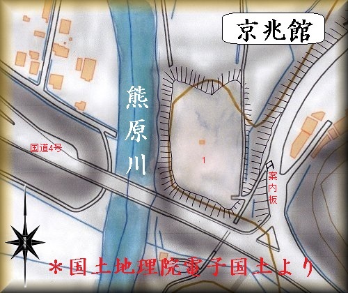 | 京兆館附近。 | 案内板。この下が館跡。 |
