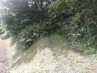 ところが帰宅してから傾斜量図で確認してみたら、その畑の奥に現在も堀切が残されているらしい様子を伺うことができた。台地基部を堀切によって区画した単郭の城館であったらしい。