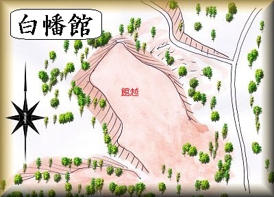 白幡館は大浦の集落から北側に進んだ台地縁部に築かれていた。北側の高瀬川に臨む微高地である。先端部の比高は10mほどある。
