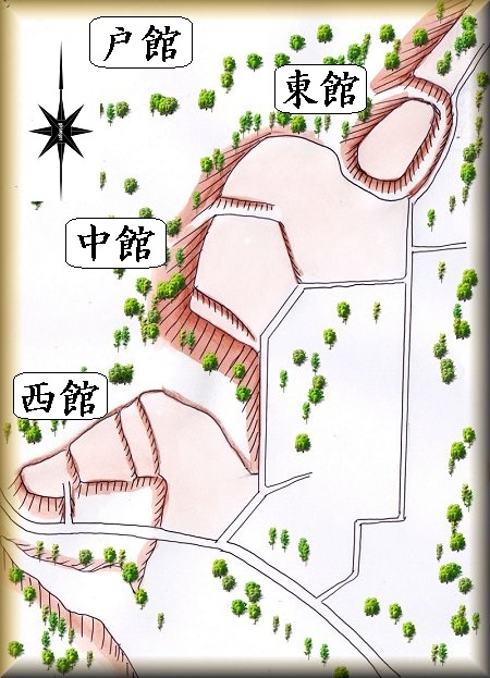 西館は、他の2つとは明らかに異なった構造をしており、やはりこれらはそれぞれ独立した城館と見る野がよいのではないかと思われる。