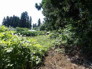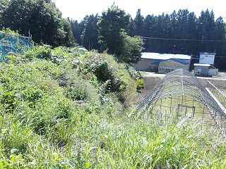 その先の一段下に2郭があるが、ここは一面の廃材置き場となっており、立ち入ることのできる状況ではなかった。『青森県の中世城館』の図を見ると、この先端部近くに堀切があったようだが、現状を見ると、消滅してしまっているものと思われる。
