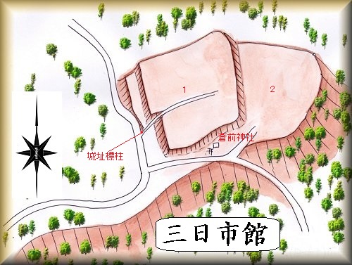 三日市館は、三日市の集落から東に突き出した台地の先端部分に築かれていた。