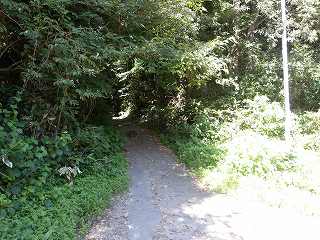 | 南方から遠望する川代館。 | 先端下の神社参道。ここから登って行く。 |