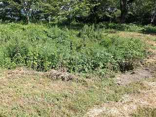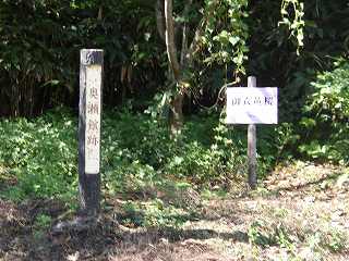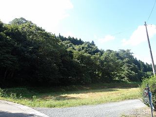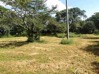 | 城址標柱。背後に土塁が見られる。 | 郭。 |