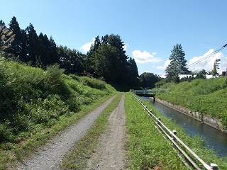 下山集落の縁部には2本の用水路が流れている。東側のものは台地下を流れているものであり、西側は台地上を流れている。