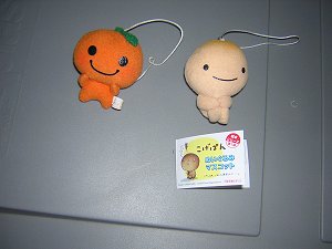 どっちもかわいー。 成田のデパートのゲームセンターでみかんぼうやを当てたのかな?こげぱんも、もちろんそこにあるし、ほかのとこにもあるよ。