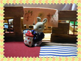 学校がおわりました。幼稚園のおむかえです。うさぎちゃんは、走って幼稚園にいきました。