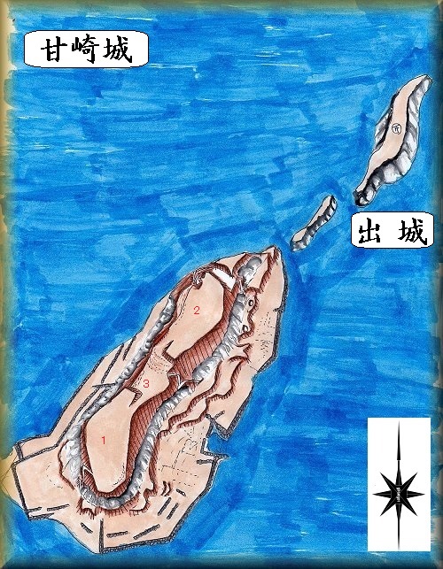 甘崎城は、古代から存在した城で「甘崎」の「甘」は「海人」を、「崎」は「防人」を表しているのだという。