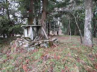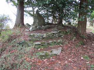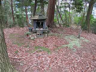 1郭には、土壇の上に祭られた祠や碑がある。土壇の周囲には石が積まれているのが特徴的である。