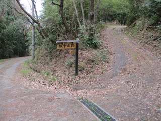 | 松森城林道の先にある看板。ここから看板の裏の道を進んで行く。 | |