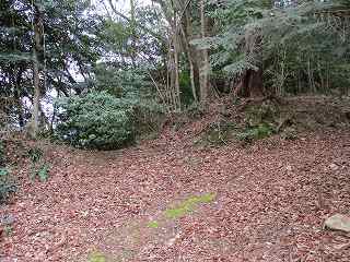 | その先の1郭下の堀切。 | 1郭東側下の帯曲輪の先は小さな堀切状になっている。 |
