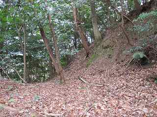 | 2郭南側の城塁と堀切。 | その堀切の側面部。 |