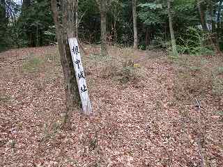 その先から城塁に沿って登って行く。虎口から進入すると、そこが2郭である。ここはしっかりと削平された郭になっており、ここに城址標柱が立て掛けられていた。