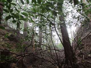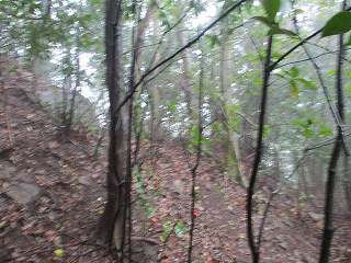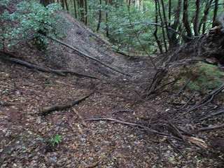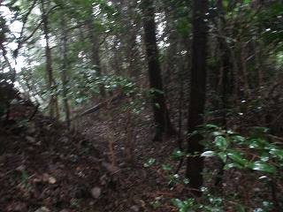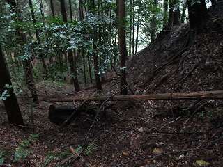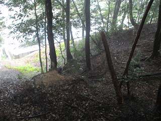 | 堀切の側面部。 | ここから竪堀が下まで長く延びている。 |