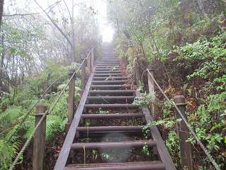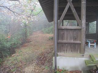 | そのすぐ上にある休憩所。 | そこから東側の側面部に回り込んで、後はこの長い階段を登って行く。 |