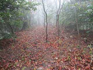途中から道は徒歩でなければ進めない状態になってくる。南東端で折り返すところから尾根を階段状に登って行くようになっている。