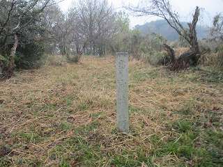 | 1郭に建てられた城址碑。 | 1郭側面部にあった石垣。これは城郭遺構であるかもしれない。 |