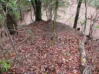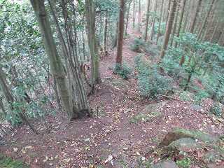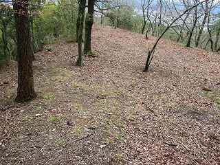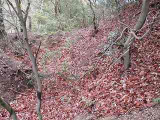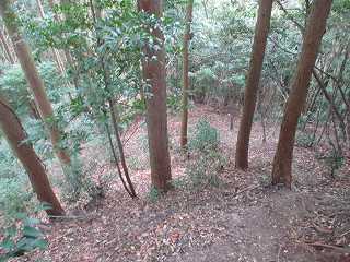 3郭から下の尾根に降って行くと、そこには小規模な堀切があった。さらに尾根は続いており、尾根の両側が削られているような箇所もあるが、あまり明確なものではない。
