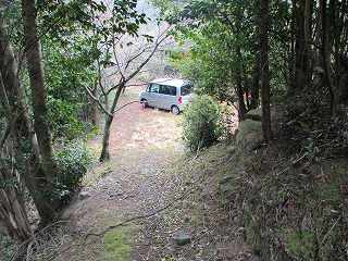 尾根基部の側面部下は駐車できるスペースとなっているので、ここに車を置いて、尾根部分に登って行く。