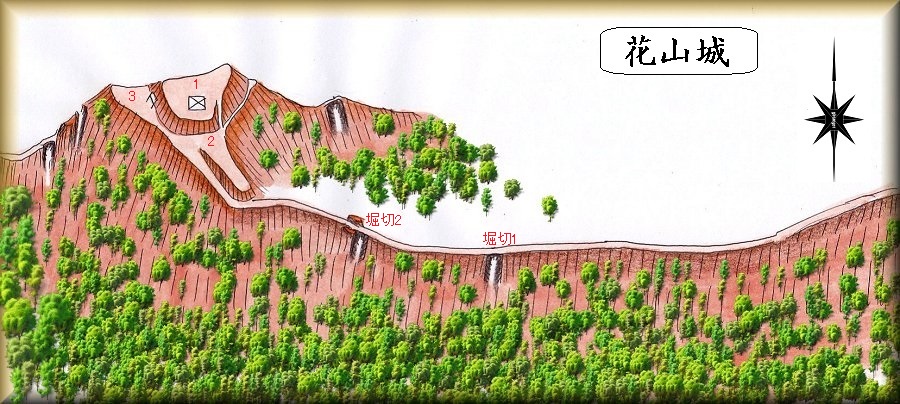 花山城はコンパクトにまとまっているが、それほど郭面積を有してはおらず、多数の軍勢が籠城できるような城郭ではなかったようだ。