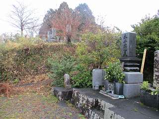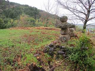 | 北側の入口。近くに駐車できるスペースがあったので、そこに車を停めて、ここから登ってみた。 | 3郭にある古そうな五輪塔。 |
