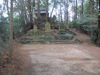 | 2郭に祭られている3つの石碑。 | 1郭に祭られている神社。 |