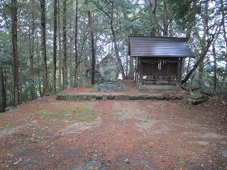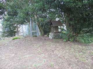 そこからわずかな段差で一段上がったところが2郭。といっても、この段差は2郭に祭られている神社の造成の際に生じたものであると思われる。また、2郭の奥には3基の石碑が建てられている。