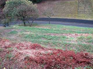 | 1郭内部。休憩所がある。 | 1郭北側下の堀切。 |