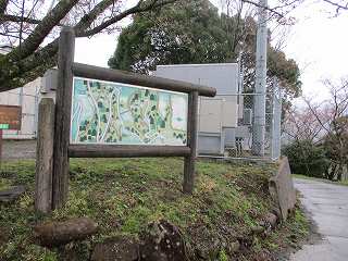 2郭から側面部を通って1郭の背後に回り込んだところが3郭で、ここに城の案内板が設置されていた。
