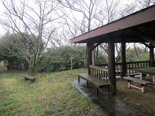 | 東側に緩やかに延びていった尾根の先にある東屋。ここまでが城の範囲であったと推定する。 | |