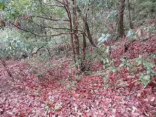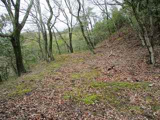 その下の3郭も長軸50mほどと、けっこう大きな郭となっている。この郭には東西の両方に小規模ながらも虎口が形成されている。西側の虎口を降りると、下の林道に出ることができる。