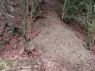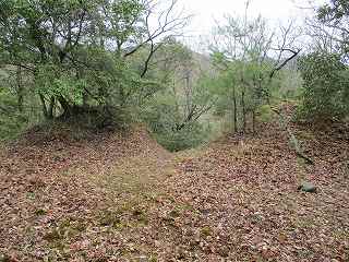 | 2郭手前の堀切の側面部。 | 2郭虎口。しっかりと形成されたものである。 |