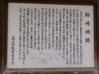 鮎崎城の城主は鮎崎氏であったと伝えられるが、鮎崎氏について詳しいことは分かっていない。