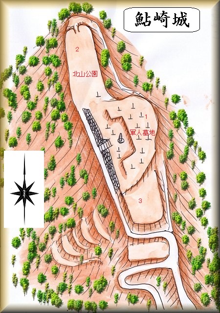 山稜上の北側は北山公園や軍人墓地となっている。この辺りが城址だったものと想像される。
