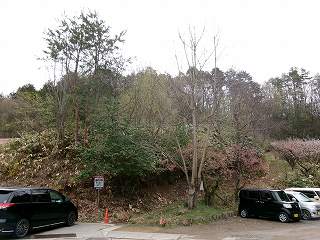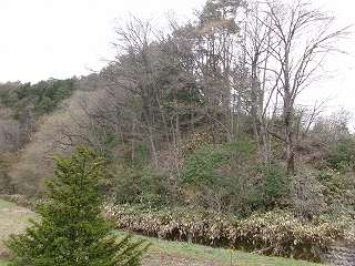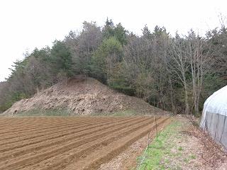 やはり背後に山稜を控えた地形となっており、県道側から見ると一段高い地形となっている。