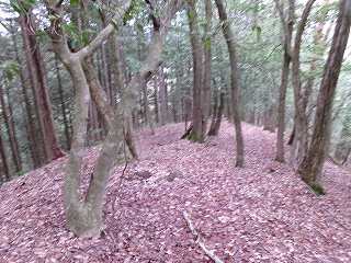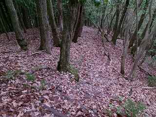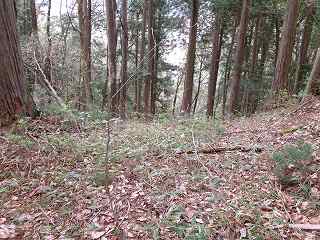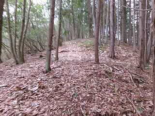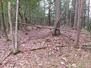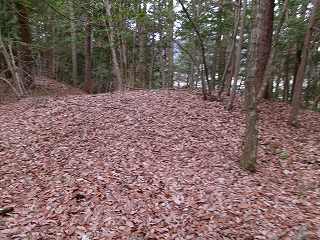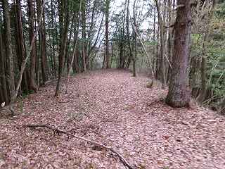 尾根はそこから北東側に続いて行く。幅広に形成されており、尾根上も郭として削平されているようである。
