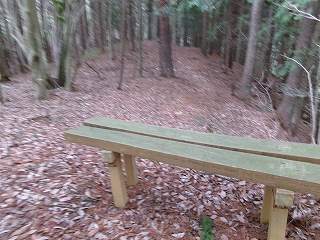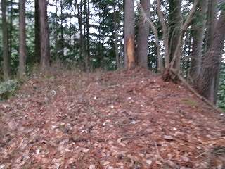 それでも進んで行くと、小さな郭があり、そこからさらに尾根を登ったところに小規模な堀切が掘られていた。